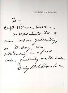 - ↑ Eisenhower, Dwight D.; Crusade in Europe; Doubleday & Co. Inc., 1948