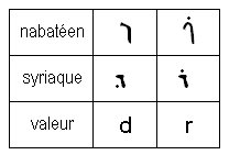 As cursive Nabataean writing evolved into Arabic writing, the writing became largely joined-up. Some of the letters became the same shape as other letters, producing more ambiguities, as in the table: