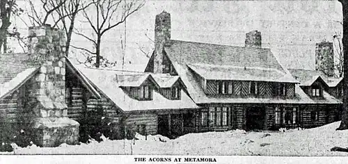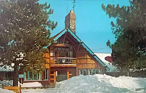 The Hidden Valley Resort was formed in 1937 by Detroit-area steel magnate Donald B. McLouth (founder and president of McLouth Steel) and was the first private ski club in North America[64] (and had the first motorized rope tow in the U.S.[65]). Members included Detroit industrialists such as the families of Henry Ford, William Durant, Walter Briggs, C. Thorne Murphy, Alvan Macauley, David Wallace, Gordon Saunders, and Lang Hubbard.[66] In 1947, 6 years after McLouth hired Keyes to design his home in Bloomfield Hills, Keyes was hired to design an extensive expansion of the resort with a Tyrolian Alpine motif[65] (aided by Austrians in charge of construction and desired by club founders who frequented the slopes of Austria and Switzerland). At the centerpiece of Keyes's design was a "Hansel-and-Gretel-look" Swiss chalet style lodge,[67] where he incorporated bow-fronted, symmetrical wings and specifically referenced the traditional building style of houses and farms in the Alpine regions of Switzerland, Savoy and Tyrol. (Keyes's designs subsequently inspired an alpine theme throughout the nearby village of Gaylord.[67]) The lodge's "original caramel-stained pine logs, accented with Bavarian-blue trim, are retained today."[65]
