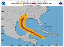 - ↑ Beven, Jack (8 October 2020). "Hurricane Delta Advisory Number 17". www.nhc.noaa.gov. Miami, Florida: National Hurricane Center. Retrieved 8 October 2020.