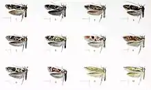 | Illustrations in Fauna Hawaiiensis: 1. Hyposmocoma subscolopax, 2. Hyposmocoma tetraonella, 3. Hyposmocoma somatodes, 4. Hyposmocoma belophora, 5. Hyposmocoma turdella, 6. Hyposmocoma subcitrella, 7. Hyposmocoma inflexa, 8. Hyposmocoma brevistrigata, 9. Hyposmocoma discolor, 10. Hyposmocoma fuscotogata, 11. Hyposmocoma radiatella and 12. Hyposmocoma barbata | |
