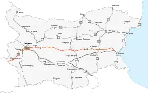 | Major cities | Kyustendil, Pernik, Sofia, Pirdop, Sopot, Karlovo, Kazanlak, Sliven, Karnobat, Aytos |