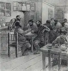 V.N. Ladyzhensky[note 2] in his memoirs remembered how in Melikhovo he had a conversation with Chekhov on the dire conditions which teachers had to live in, in rural Russia. "...Later I recognized some of [what's been said] in the harsh realism of this short story, In the Cart," he wrote in Mir Bozhiy (April 1905).[2]