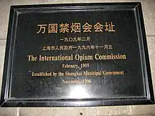 The International Opium Commission was a meeting convened on February 1 to February 26, 1909 in Shanghai that represented one of the first steps toward international drug prohibition.
