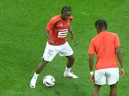On 12 February 2023 in a 3–1 defeat against Toulouse, Doku played the full 90 minutes for the first time since 9 May 2021. Doku had an assist in each of the two legs of Europa League's knockout round play-off against Shakhtar Donetsk, but was unable to prevent his team from being eliminated from the tournament.[14] On 15 April, Doku scored his first brace for Rennes in a 3–0 home victory over Reims.[15] The two goals against Reims were the first for Doku on Rennes' home ground Roazhon Park since he arrived at the club.