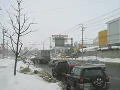 National Route 12 is a 135.7-kilometer-long (84.3 mi) highway in western Hokkaido that runs north from Sapporo to Asahikawa. Its southern terminus lies at an intersection in Chūō-ku, Sapporo where it meets National Routes 36 and 230. Along the way from Sapporo to Asahikawa, it passes through the cities of Ebetsu, Iwamizawa, Takikawa, and Fukagawa.[2] The highway is closely paralleled by the tolled Dō-Ō Expressway and it functions as free alternative route to the expressway between Sapporo and Asahikawa.[3] A notable section of the highway between the cities of Bibai and Takikawa is known for being the longest straight section of roadway in Japan.[4] Marked as being 29.2 kilometers (18.1 mi) long, there is actually a slight curve in Takikawa, bringing the actual length of the straight section of the road down to 27.7 kilometers (17.2 mi).[4] Its northern terminus in Asahikawa is the intersection where it meets National Routes 39 and 40.[5]