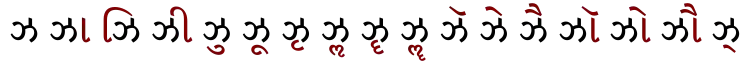 ঝা ঝি ঝী ঝু ঝূ ঝৃ ঝৄ ঝে ঝৈ ঝো ঝৌ ঝ্