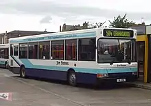 Jim Stones Coaches was established in 1968 as a charter operator. Upon the bus deregulation in October 1986 the company started bus operations with two routes, 596 from Leigh to Landside and 599 from Leigh to Higher Folds. The company expanded operations by filling the bus network where the larger incumbent operator GM Buses retracted services, as well as winning school and tendered contract services from Transport for Greater Manchester.[1] In January 2020, Jim Stones announced his intention to retire with operations ceasing on 18 April 2020.[2][3][4] Diamond North West, Vision Bus and Warrington's Own Buses took over the services.[5]