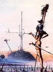 After the company's move to Nottingham in 1986, Blanche was eventually made art director of Games Workshop through his acquaintance with new manager Bryan Ansell, directing the in-house art department, commissioning work from outside illustrators, and producing designs for Citadel Miniatures and artwork.[2][9] He has overseen and contributed to regular art and miniature painting columns in White Dwarf for many years, as well as providing numerous illustrations for Games Workshop games, and, with other artists like Ian Miller and Adrian Smith, providing a formative contribution to the look of the companies core products.[1]