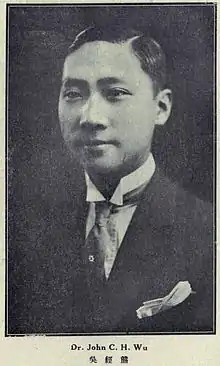 John Ching Hsiung Wu[lower-alpha 1] (also John C.H. Wu; Traditional Chinese: 吳經熊; pinyin: Wu Jingxiong) (born 28 March 1899, Ningbo – 6 February 1986) was a Chinese jurist and author. He wrote works in Chinese, English, French, and German on Christian spirituality, Chinese literature (including a translation of the Tao Te Ching) and on legal topics. On his Tao Te Ching translation, Thomas Merton said Wu's work was "absolutely necessary for us not only to progress but even to survive."[1]