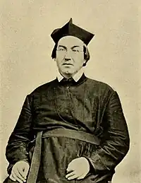 Early was once again appointed president of Loyola College in the summer of 1866,[28] to replace Ciampi.[29] He also again became pastor of St. Ignatius Church.[17] The college fared well during his leadership. While there had been a pause in the conferral of degrees during the Civil War, Early saw that students completed their course of study and received degrees. The Loyola Dramatic Association, which was founded in 1865, was especially active during his term.[30] After four years, his presidency came to an end in July 1870, when he again returned to Georgetown.[31] He was succeeded by Edward Henchy as president of Loyola,[29] and as pastor of St. Ignatius.[32]