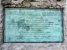 Replacement plaque on the John Mason Statue in Windsor, Connecticut USA - Major General - chief military officer of the United Colonies 1654–1672