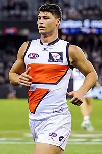 Patton was recruited to the AFL by Greater Western Sydney with the first overall selection in the 2011 AFL National Draft. Patton travelled to Stockholm, Sweden in early 2012 for treatment on a jumper's knee injury, and missed the first eleven rounds of the 2012 season.[5] Patton played his first AFL game on 16 June against Richmond, kicking one goal from seven disposals. In round 3, 2013, Patton's tenth career game, he suffered a torn anterior cruciate ligament, which would see him miss the remainder of the 2013 season.[6] In round 21, 2014 after having a break out year Patton re-tore his ACL in the right knee and underwent a traditional knee reconstruction, which saw him miss 12 months.