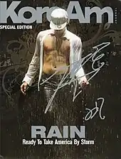 As part of his Rainy Day Tour, Rain held a two-day concert at the Theater at Madison Square Garden in New York City in February 2006. It was the largest concert by a Korean artist in the city at the time, attracting over 10,000 people, and was sold out within a matter of days.[16] The concert featured appearances from Park Ji-yoon, as well as JoJo, P. Diddy and Omarion and was promoted by the Asian concert production company Rainstone Live.[15][17][18] In April 2006, Rain was included in Time magazine's list of "100 Most Influential People in the World".[19][20] Rain released his debut Japanese album, Eternal Rain on September 13, 2006, which peaked at number 14 on the Oricon Albums Chart.[21]
