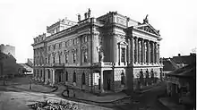 Notwithstanding the reduction in spending, numerous significant investments were made during Kamermayer's first mayoral term (though, many of them were initiated and launched before the unification). The first People's Theatre (Hungarian: Népszínház), constructed by Fellner & Helmer, opened its doors on 15 October 1875, the opening ceremony was also attended by Francis Joseph and his son, Crown Prince Rudolph. The city administration collected the expenditures through donations and aid. Kamermayer emphasized the development of Hungarian as the national language and its spread among Budapest's bourgeoisie many of whom were still of German origin. The Music Academy was founded on 14 November 1875. By 1879, the academy relocated to a three-story Neo-Renaissance building designed by Adolf Láng built on today's Andrássy Avenue.[23] The Budapest Cog-wheel Railway was put into operation on 24 June 1874, the whole line was built according to Riggenbach's cog-wheel system.[24] In the same year, the New City Hall was built on Váci Street, which today is the seat of the General Assembly (while the Old City Hall building near Deák Ferenc Square in Városház Street, remained the office of Budapest's Mayor).[25] The Margaret Bridge was built by the Ernest Goüin et Cie. construction company between 1872 and 1876 becoming the second permanent bridge in Budapest after the Chain Bridge.[26] The Nyugati Railway Terminal, built by the Eiffel Company, was opened on 28 October 1877. (The Ferdinand Bridge, which connected Terézváros and Újlipótváros neighborhoods over the railway lines, was already completed in 1874).[26]