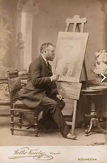 In 1874, he took photographs at the Royal Hungarian residence, Schloss Gödöllő, and was named Court Photographer.[2] The following year, he opened a studio under his Hungarian name, in Budapest, where he employed over thirty people. The well-known artist, József Borsos, also worked there for a time.[2]