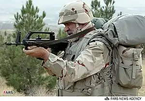 In the early 2000s, Iran was testing prototypes of G3 battle rifles made under license for the Iranian military in bullpup configurations to test their feasibility.[6] This was later dropped in favor of a similar weapon that's chambered in 5.56 NATO.[6] The KH-2002 was planned, from 2006, to replace the G3s in the Iranian military.[7]