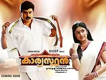 Kaaryasthan (transl. The Caretaker) is a 2010 Malayalam-language comedy drama film written by the duo Udayakrishna-Siby K. Thomas and directed by debutant Thomson K. Thomas. It stars Dileep, Siddique, Madhu and Suraj Venjaramoodu. It was Dileep's 100th feature film.[1][2][3] Akhila, a noted television anchor and dancer, debuted as an actress through this film.[4] The film is an unofficial remake of 2000 Telugu film Kalisundam Raa with minor changes in the plot. In the film, Krishnanunni tries to settle the dispute between two feuding families. In the process of doing so, he ends up falling in love with Sreebala, who belongs to one of the families.