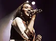 Raghavendar began her musical career at the age of five. She acted in the film Punnagai Mannan aged six.[6] Her first vocals were for a family song with P. Susheela, Mano, M. M. Srilekha and her younger sister Prasanna, composed by the music director Saluri Vasurao.[7] As an adult, she started her career as a full-fledged playback singer in 1999 with the song "Mangalagouriki" from the Telugu film Manoharam under the music director Mani Sharma. She has worked with many legendary composers and singers like M. S. Viswanathan, Ilaiyaraaja, A. R. Rahman, K. V. Mahadevan, S. P. Balasubrahmanyam and K. S. Chithra. She is more familiar to the public as a stage performer rather than a playback singer, having performed nearly 3,000 stage shows worldwide.[1][8] In 2013, she was the lead performer in a tribute concert for her guru, Madurai T. Srinivasan.[4]
