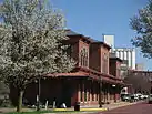 From 1881 to 2016, downtown Kent was home to a flour mill, housed in a complex originally built from 1880 to 1881 by the Williams brothers and later acquired by the Star of the West Milling Company. The mill closed in 2016 after Star of the West consolidated operations to Willard, Ohio, and the complex was sold to a local developer in 2019. On the morning of December 2, 2022, part of the complex caught fire. In addition to the Kent Fire Department, 11 additional area fire departments and multiple other agencies responded.[26] The fire destroyed part of the original 1881 mill building and the grain elevator, built in 1890, and damaged other parts of the complex. The adjacent taller white silos, built in 1936, were not damaged.[27]