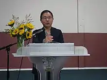 In addition, he has done many lectures at various churches, academic institutions (such as at the Heavenly Dream School) military bases, and others. He especially argues that engaging the North Korean regime is fundamentally flawed, due to the determination the North Korean elites have to preserve the regime.[6] He also opposes humanitarian aid towards the North Korean regime in favor of sanctions, as he claims that most of the humanitarian aid that goes towards North Korea flow towards the regime.[7] For that, he has received criticism from left-wing commentators in Korea who advocate engagement with North Korea.[8]