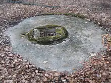 There are three launch pads for the Luftwaffe Bachem Ba 349 Natter rocket interceptors located in the Hasenholz forest near Kirchheim unter Teck. They are all that remain from the once active launch site constructed in 1945. The three launchpads are arranged in the form of an equilateral triangle, whose sides point toward the east and the south. The distance between the launchpads is approximately 50 meters. The circular concrete pads on which the Bachem Ba 349s and their launch towers once stood still exist. In the center of each of the three concrete plates is a square hole approximately 50 centimeters deep, which once served as the foundation for the launch tower. Beside each hole is a pipe, cut off at ground level, which was probably once a cable pit.