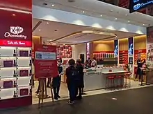 Kit Kat has opened a Chocolatory in the Melbourne Central Shopping Centre in Melbourne, Australia. There is also one in Sydney. The shops allow customers to use touch screens to create their own Kit Kat from a selection of chocolates and ingredients; they are made while the customers wait, and customers can mix their own flavours with some Kit Kat that has been provided in store.[61]