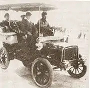 The Knox Model A was a three-wheel runabout with a 5-hp one-cylinder air-cooled engine. In 1902 a four-wheel runabout and a 8-hp two-cylinder engine joined the model line-up. Early cars were called Knoxmobile with the Waterless Knox being used from 1903. A slogan used was "The Car That Never Drinks".[3] In some models, passengers rode up front over the front axle while the driver and another passenger sat in the back over the engine.[4]