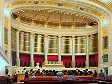 The building is about 70×40 meters and had originally three halls, in which there can be simultaneous concerts, since they are sound-proofed. The original Art Nouveau building was partly destroyed during renovations and adaptions, but the building was reconstructed from original sketches in the 1970s. A historic organ was installed in the Konzerthaus by the Austrian firm Rieger in 1913. Between 1997 and 2000 the house was completely renovated.