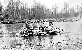 ![]() Russian ethnographer Vladimir Jochelson (1855 - 1937) on a raft in the Korkodon during the Jesup Expedition. |