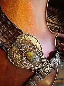 Although distancing himself from a more serious future endeavor in fashion design,[5] King's interest in ancient craftsmanship and jewellery's role-distinguishing social function has resulted in the creation of what he calls wearable art, which mainly consists of lavishly decorated belts.[10]