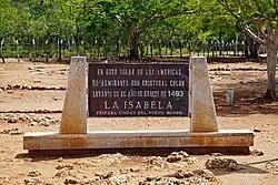 La Isabela in Puerto Plata Province, Dominican Republic was the first stable Spanish settlement and town in the Americas established in December 1493. The site is 42 km west of the city of Puerto Plata, adjacent to the village of El Castillo. The area now forms a National Historic Park.