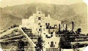 In October 1928, Aimee Semple McPherson, a renowned evangelist, commissioned Architect Edwin Dickman to design for her a palatial home in Country Club Heights, which has since won fame as "Aimee's Castle".[31] This is said to be a house born of Hollywood, inspired by Moorish architectural design. This home served as the evangelist's part-time home until 1939, when it passed to new ownership. After changing hands many times, in 2005, International Church of the Foursquare Gospel, the modern incarnation of McPherson's Foursquare Gospel, purchased and restored the property after years of neglect.[32][33]