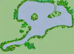 The lake is considered "well stocked" in that it supports a large community of largemouth Bass and various catfish. The lake is generally green in color with photosynthetic plankton and low in weeds due to invasive grass carp. The bottom of the lake is between 6–10 feet (1.8–3.1m) in depth and strewn with small branches and trees due to beaver activity. No swimming is allowed due to alligators and rare plankton blooms that have turned the water bright orange for months.