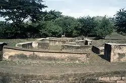 In 1987, Elphidio Ortega, Advisor to the Organization of American States (OAS), conducted 14 stratigraphic wells on the site. Contrary to previous researchers, he suggested that the colonial settlement was not located on the native site, but rather alongside a prehispanic town. Lourdes Dominguez, a Cuban national, also made investigations in 12 wells, both outside the limit of some structures from which obtained more 1100 pieces of ceramic evidence. After her research, Dominguez proposed the theory that León Viejo was built on a prehispanic settlement, as suggested by the site's abundance of ceramics. This theory came into contradiction with Elphidio Ortega, who concluded that the colonial city was established along an indigenous settlement, but not over it.[2]