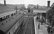 The railway line from Worcester to Hereford opened in several stages, with the section from Malvern to Shelwick Junction, just north of Hereford, opening on 15 September 1861.[1] The current signal box however dates from 1885 opening as the branch line from Ledbury to Newent and Gloucester opened (27 July 1885). It is thought that this current signal box must have replaced an earlier 1861 GWR built signal box, but there is currently no written or physical evidence to support this theory. A recent suggestion has been that the original signal box was just a few metres east of the existing box but the site was covered by new track leading to a redesigned goods yard.
