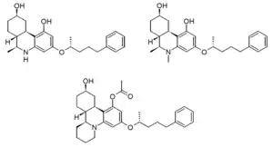 Levonantradol (CP 50,556-1) is a synthetic cannabinoid analog of dronabinol (Marinol) developed by Pfizer in the 1980s. It is around 30 times more potent than THC, and exhibits antiemetic and analgesic effects via activation of CB1 and CB2 cannabinoid receptors.[1] Levonantradol is not currently used in medicine as dronabinol or nabilone are felt to be more useful for most conditions, however it is widely used in research into the potential therapeutic applications of cannabinoids.[2][3][4]