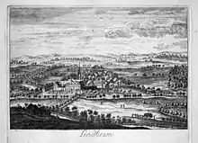 After the war, Christian Ludwig von Oeynhausen had a schloss built that was finished in 1697. This used stones from the former castle. Later, the lords of Weitolshausen named Schrautenbach owned the house and, in 1736, Nikolaus Ludwig von Zinzendorf, who had been expelled from Saxony with the Herrnhuter Brüdergemeine, stayed here for a short time.[4] In January 1747 the famous devotional writer, Friedrich Christoph Steinhofer, was appointed the head of the Theological Seminar of the Herrnhuter Brüdergemeine in Lindheim.