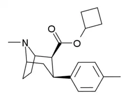 - ↑ Davies, HM; Saikali, E; Sexton, T; Childers, SR (1993). "Novel 2-substituted cocaine analogs: binding properties at dopamine transport sites in rat striatum". Eur. J. Pharmacol. 244 (1): 93–7. doi:10.1016/0922-4106(93)90063-f. PMID 8420793.