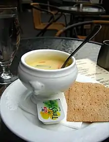 Corn chowder United States (New England) Chowder Similar to New England clam chowder, with corn substituted for clams in the recipe