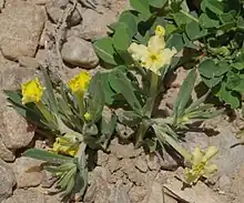 Lithospermum incisum is a species of flowering plant in the borage family known by several common names, including fringed puccoon, narrowleaf stoneseed, fringed gromwell, narrowleaf puccoon, and plains stoneseed. It is native to much of central Canada and the United States, where it is known from many types of habitat, but particularly piñon-juniper woodland. It is a hairy perennial herb growing from a narrow brown to black taproot and woody caudex.[2] It produces a cluster of stems up to about 30 centimeters long. The stems are lined with narrow, pointed leaves up to 6 centimeters long. The slender, trumpet-shaped flowers are pale to bright yellow or gold, and may approach 4 centimeters long. The corolla face is 1 to 2 centimeters wide, its lobes sometimes ruffled. The smaller cleistogamous (closed) flowers are the main producers of seed.[2]