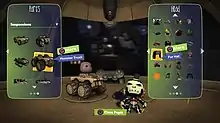 LittleBigPlanet's trademark Pod is the game's hub, though it has been expanded into a large, cardboard spaceship, with which the player travels between the game's various modes. Inside the Pod, the Sackboy can be customised, as can the cart, frames, wheels, and paint. Any in-game object can be turned into a weapon, or objects can be "painted" into the game for more talented and patient artists.[4]