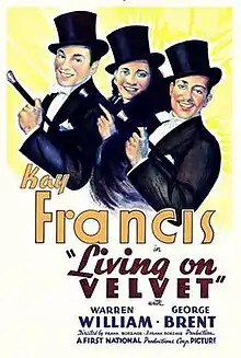 Living on Velvet is a 1935 American romantic drama film directed by Frank Borzage and starring Kay Francis, Warren William and George Brent.