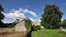 A farmstead about a quarter of a mile (1.2 km) south of the village has a 17th-century tithe barn, with a queen post roof seven bays long. It is a Grade II* listed building.[9] and a scheduled monument.[10]
