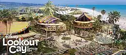 Disney also hired and offered training for Bahamians for construction, vending, and other employee positions.[3] There were also increases in calls on Bahamian ports, Nassau and Freeport, of 30 to 40 percent over 2018 calls.[3] Imagineer Joe Rohde, whose previous projects being the development of Disney's Animal Kingdom and Aulani, was assigned to oversee the ports' development,[3] before his retirement on January 4, 2021.[4] Construction workers were hired in March 2022,[5] before work finally began at Lighthouse Point the following month,[6] for an expected completion in early 2024.[7] Lighthouse Point will open exclusively to Disney Cruise Line guests on June 6, 2024.[8][9] In September 2023, Disney officially named the location "Lookout Cay at Lighthouse Point" during Destination D23.[10]