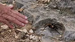 Bird life, including several different raptors, is particularly abundant and diverse throughout the year. The endangered Golden-cheeked Warbler and Black-capped Vireo are endemic to the park. Venomous snakes include the broad-banded copperhead and coral snake.[3][4] Western diamond-backed rattlesnake may also occur, as it has been documented nearby.[5] The Texas Alligator Lizard has been documented in the park. The Texas brown tarantula is often spotted. The Sabinal River maintains surface water even during exceptional drought (as in 2011), so fish and other aquatic animals are always present.