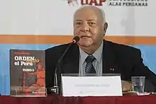 Luis Alejandro Giampietri Rojas (31 December 1940 – 4 October 2023) was a Peruvian politician belonging to the Peruvian Aprista Party and an admiral of the Peruvian Navy. Giampietri ran successfully as Alan García's first running mate in the 2006 general election. He was sworn in on 28 July 2006 and served until 28 July 2011.[1] He was also elected as Congressman representing the Constitutional Province of Callao for the 2006–2011 term. He lost his seat in the 2011 elections when he ran for re-election under the Radical Change party, but he received a minority of votes, and the Radical Change failed to pass the electoral threshold and subsequently lost its registration the following year. Before he served as Vice President and Congressman, Giampietri was a Lima City Councilman from 1999 to 2002, elected under the Fujimorist Vamos Vecino, close to then-President Alberto Fujimori.