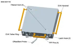 The MISSE program is a direct successor to the Mir Environmental Effects Payloads (MEEPs) that were attached for over a year to the Mir Docking Module of the space station Mir between shuttle flights STS-76 and STS-86;[2] and is a descendant of the Long Duration Exposure Facility. Also MEEPS can trace their inception to the Passive Optical Sample Array (POSA) sample trays flown on STS-1 and STS-2, and their successor Effects of Oxygen Interaction with Materials (EOIM) on STS-3 and STS-5.