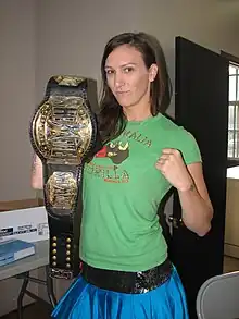 Eagles debuted soon thereafter as the bodyguard for A.J. Freeley in IWA.[9] Eagles had her first official match in November that year, against Katherine Nixxon. Eagles is a former four-time IWA Women's Champion.[6] In 2003, Eagles traveled to the United States with trainer and owner of IWA, Mark Mercedes. She competed in a try out at Ohio Valley Wrestling (OVW), a former developmental territory for World Wrestling Entertainment (WWE).[6] In her time in OVW, Eagles trained alongside such wrestlers as Christopher Daniels, Elijah Burke, and Jillian Hall. While in the U.S., Eagles wrestled for Heartland Wrestling Association (HWA), Cleveland All Pro Wrestling (CAPW), and USA Pro.[6] At different points in her career, Eagles trained at the Chikara Wrestle Factory in Philadelphia, the Ring of Honor (ROH) school, and PWA school in Sydney, Australia.[10]