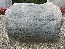 In the churchyard, the graves of Russian and Polish prisoners from the Stutthof concentration camp can be seen. They died in May 1945 shortly after arriving in Denmark on an old river barge with 351 others who survived the ordeal. [5]